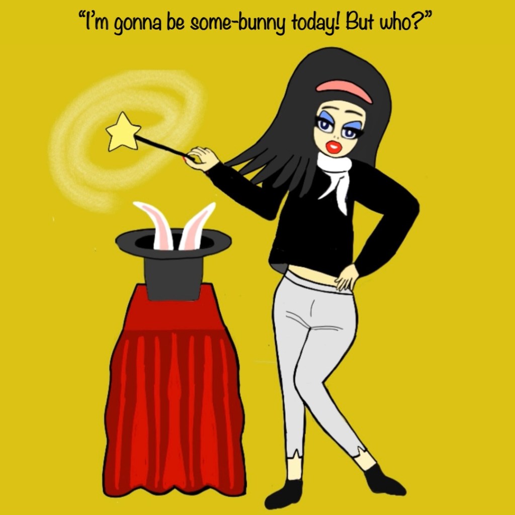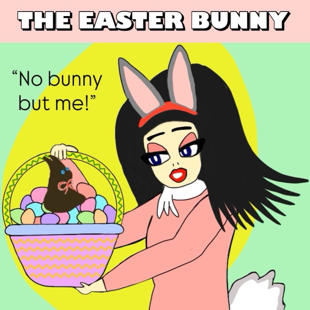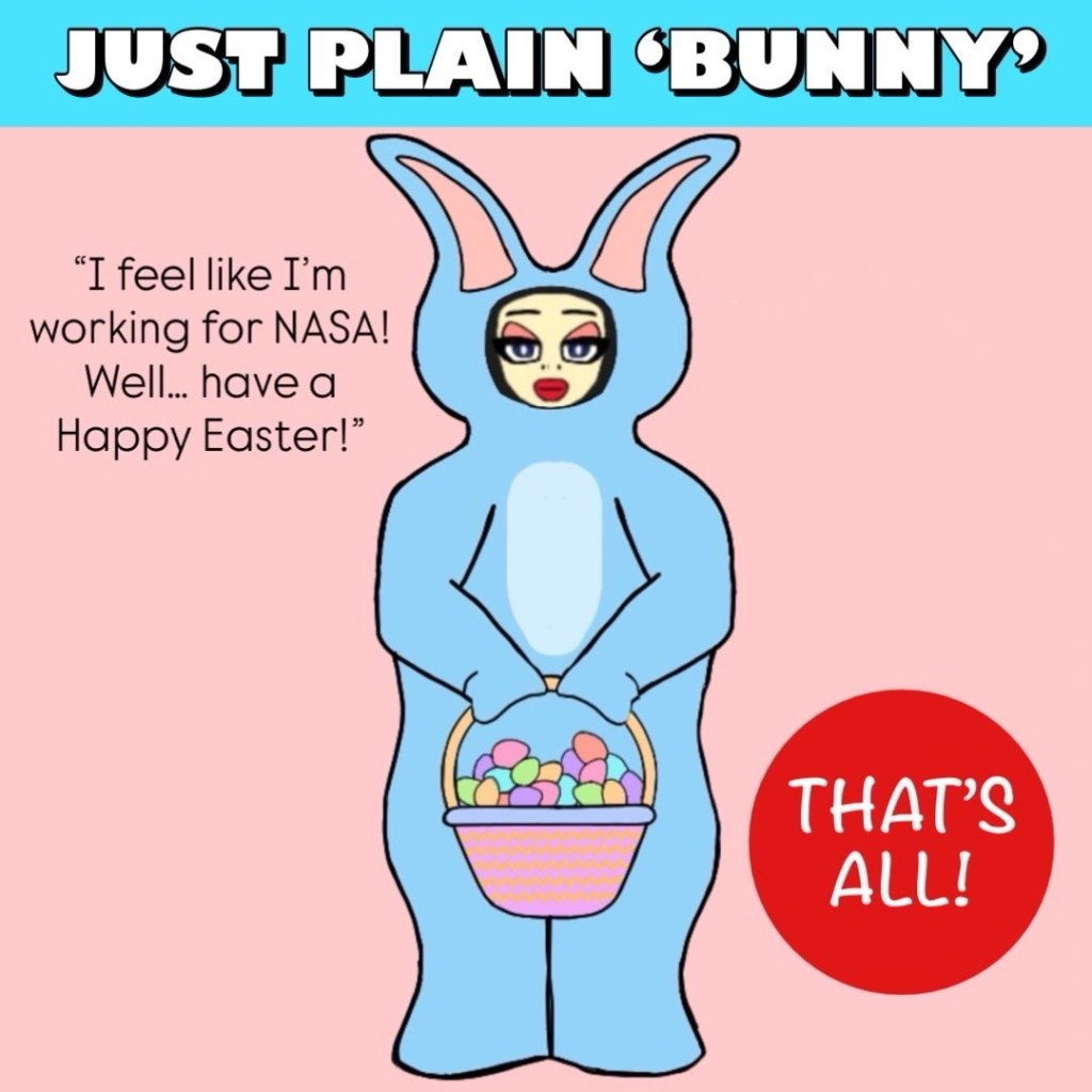 “Easter is ‘hare’ and I’m in the spring mood for a daydreamin’. So what would you think of me if I put on a pair of those rabbit ears and this puffy little $1.95 cottontail? The Easter Bunny? Bugs Bunny? Bunny Yeager, perhaps? Maybe just another silly Halloween costume. That won’t mean I’m a ‘bad bunny’ — pardon the expression — and I’m only here to have lotsa fun. Imagine the wonderful possibilities…”